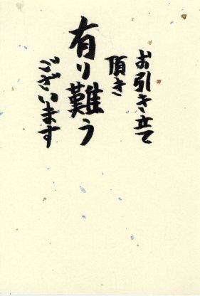 ポストカード「有り難う」 通信面(やわら紙 金銀砂入 クリーム色) 宛名面(新鳥子 雪)